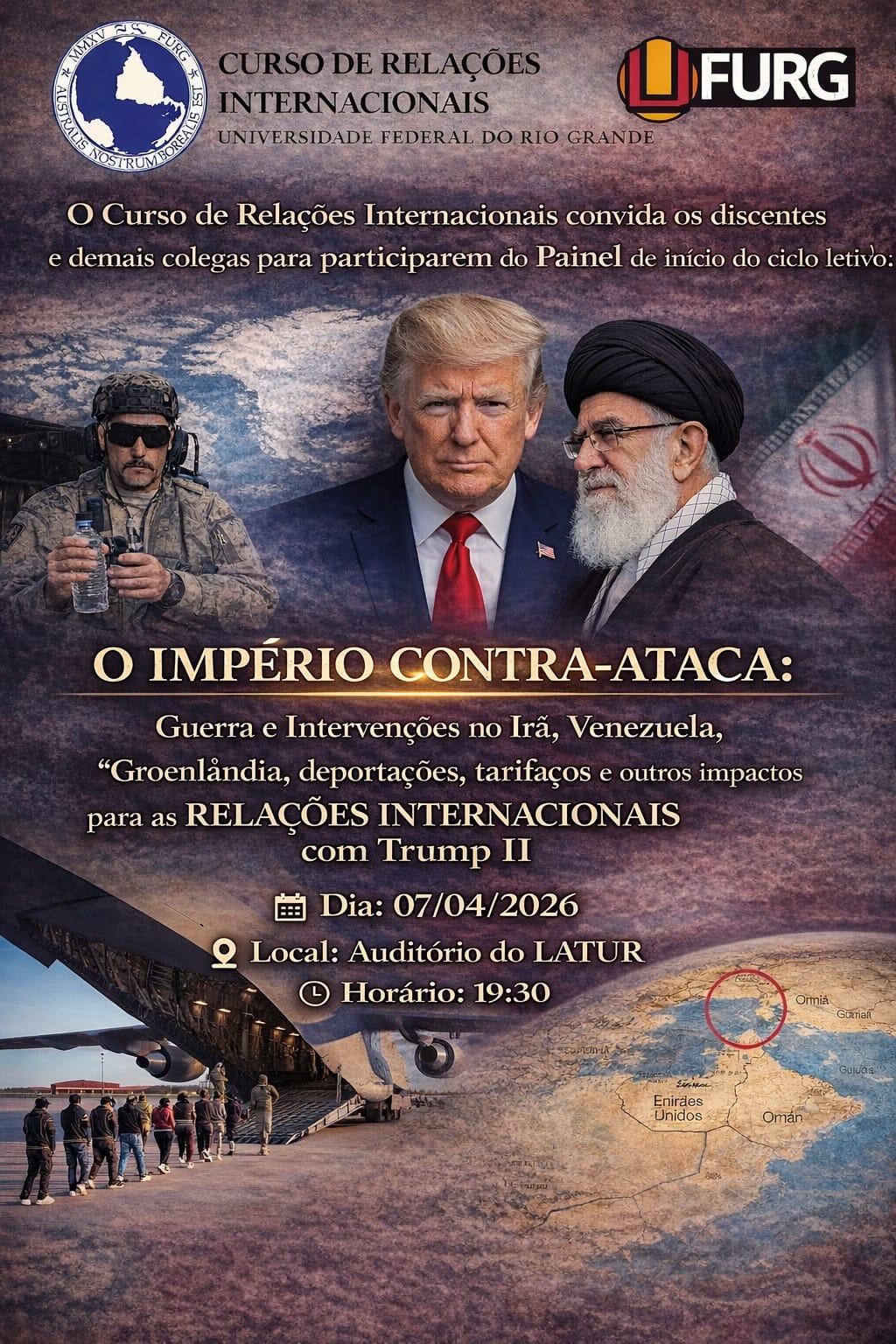 O Curso de Relações Internacionais convida a todos a participarem do Painel de início do ciclo letivo! 🥳